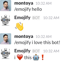 Emojify translates any text into emoji! Available on Slack, Facebook, Skype, Microsoft Teams, Kik, Telegram and Twitter.